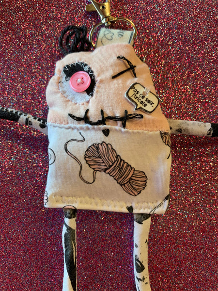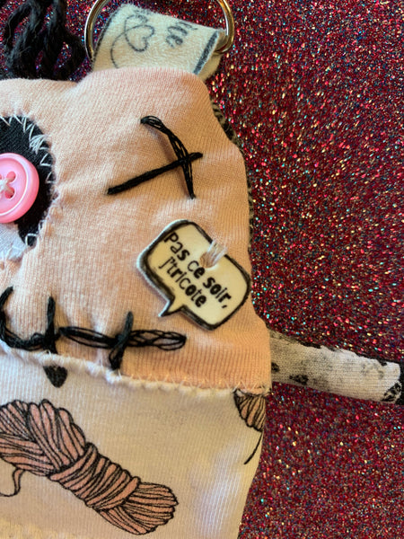 Chaque Ptipichou est monté sur une attache de métal qui vous permettra de l’accrocher sur un sac ou autre pour le trainer avec vous en tout temps. Il deviendra votre petit compagnon de tous les jours :)